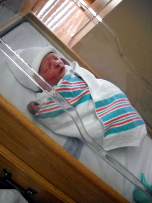 She had her cord wrapped around her neck once a bit, and because of that was in distress a bit at the end. So she couldn't come straight up to my belly like I had wanted. My mom went straight to the incubator with her, and jumped back & forth between us (it was only about 10 ft away from my bed). The Midwife that delivered her was absolutely awesome -- I am so glad I had her. The nurses were all also the best.